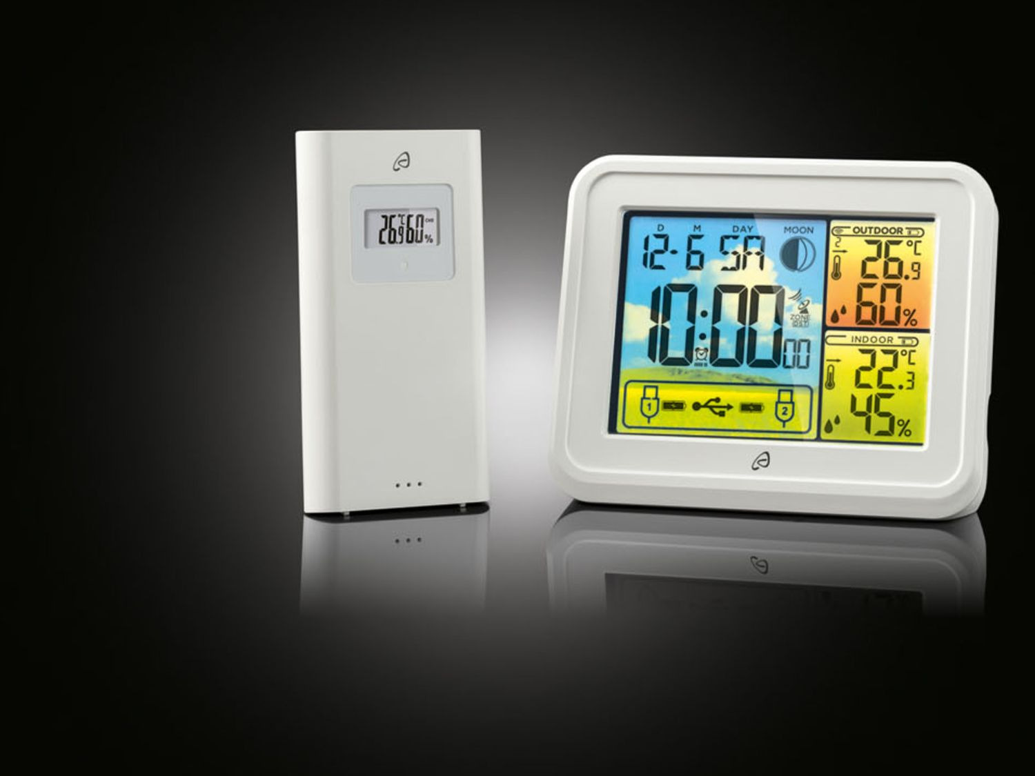 AURIOL® Funk Wetterstation, mit Farbdisplay und 2 x USB