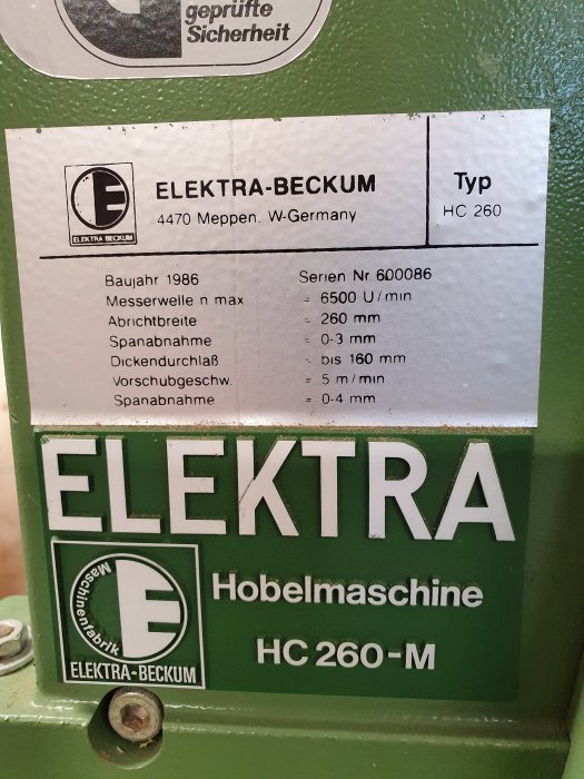 Mein Maschinenpark Elektra Beckum Hobelmaschine HC 260
