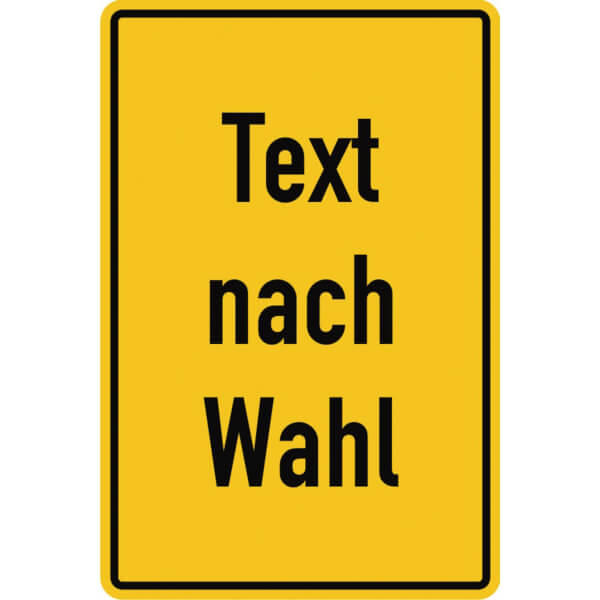 Aluminiumschild, erhaben geprägt, mit Text nach Wahl Grundfarbe gelb, Schrift schwarz, Ecken rund,