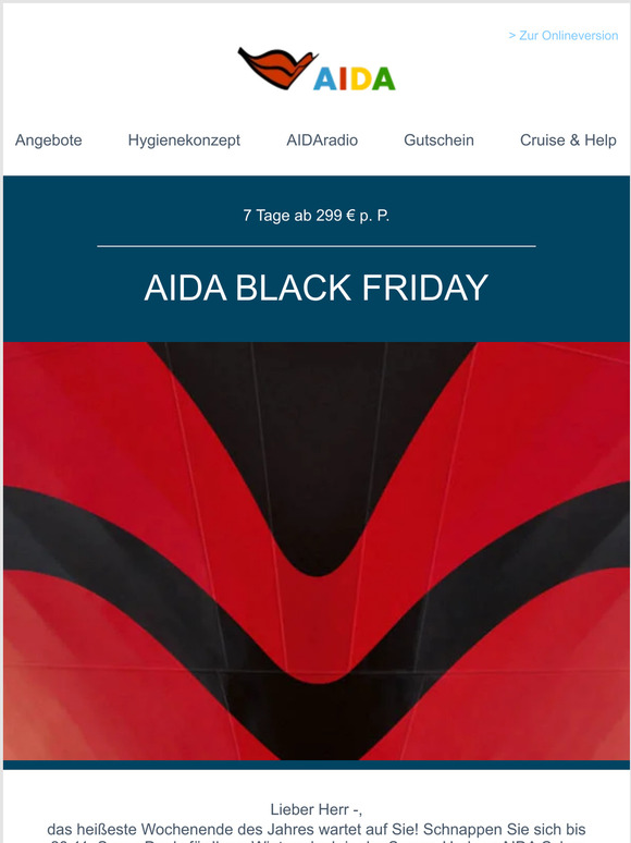 AIDA Black Friday Die besten UrlaubsDeals des Jahres. Ab 24. November geht’s los! BlackFriday.de