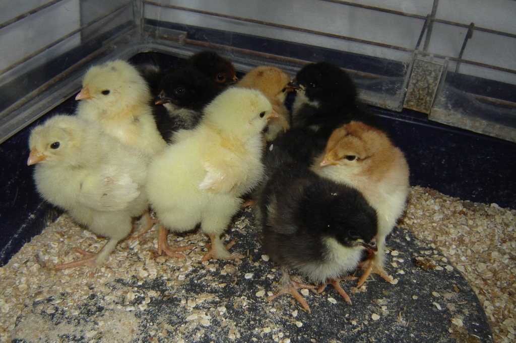 Hühner Küken Tierbesprechung: Vier Wochen alte Küken der französischen Rasse Marans im Farbschlag Schwarz-Kupfer. Hier fällt es mir sehr leicht zu erkennen w.