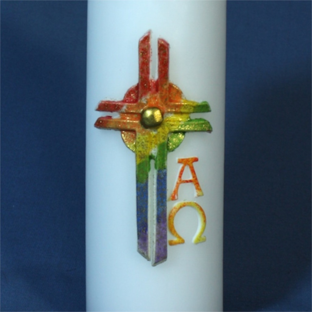 Osterkerze 225 x 70 mm A+O Regenbogenkreuz Osterkerze, Kerzen basteln, Osterkerzen basteln
