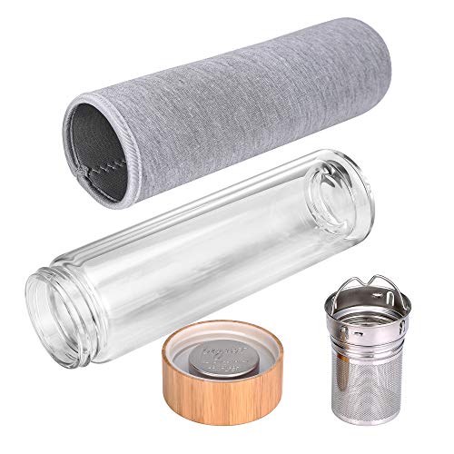 ecooe Teeflasche mit Sieb 440ml Weinrot Doppelwandig Teebecher to go Bottle Trinkflasche mit 18/8 Edelstahl Sieb und Schutztasche Tee Glasflasche für Tee. Hochwertigen Materialien: Die TeeFlasche to go besteht aus hochwertigem, transparentem Borosilikatglas, ist bleifrei, geruchsneutral und hält plötzlichen Temperaturschwankungen stand.