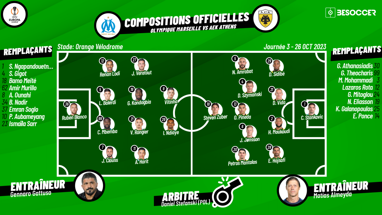 Compos officielles MarseilleAEK Athènes