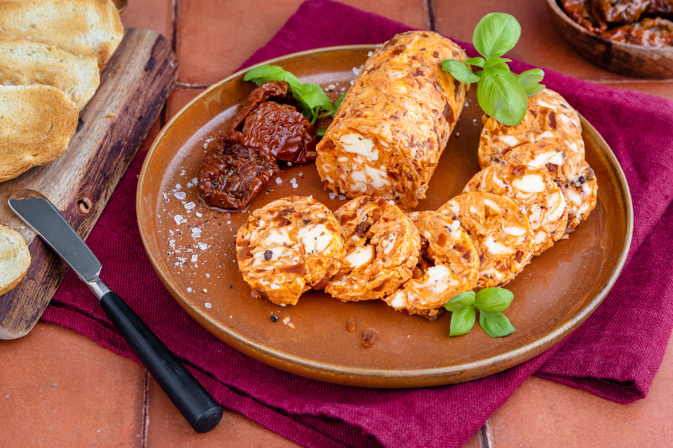 Tomatenbutter mit getrockneten Tomaten. Dieser Aufstrich ist für mich ein Allrounder und kann entweder nur auf einer Scheibe frischem Brot oder Baguette gegessen werden, passt aber auch gut zu Käse oder unter ein Wurstbrot. Tomatenbutter. einfach. Zutaten. 10 Portionen. Zubereitung.